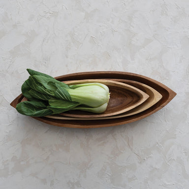 Acacia Wood Boat Shaped Bowls, Natural, Set of 3
